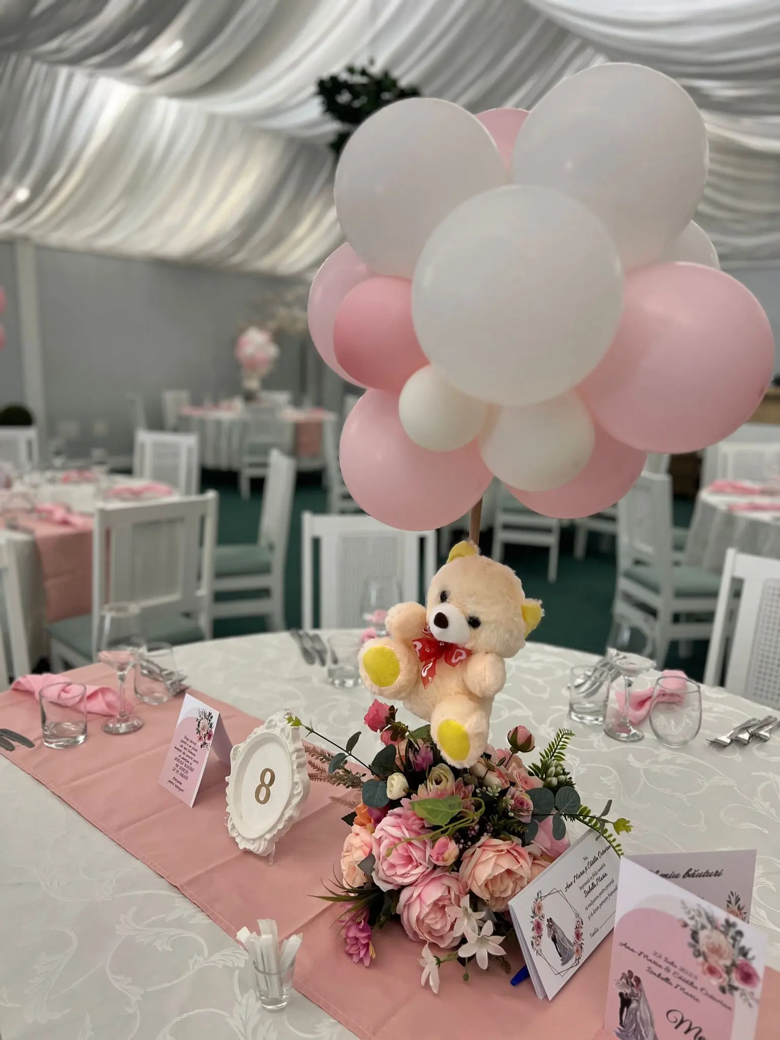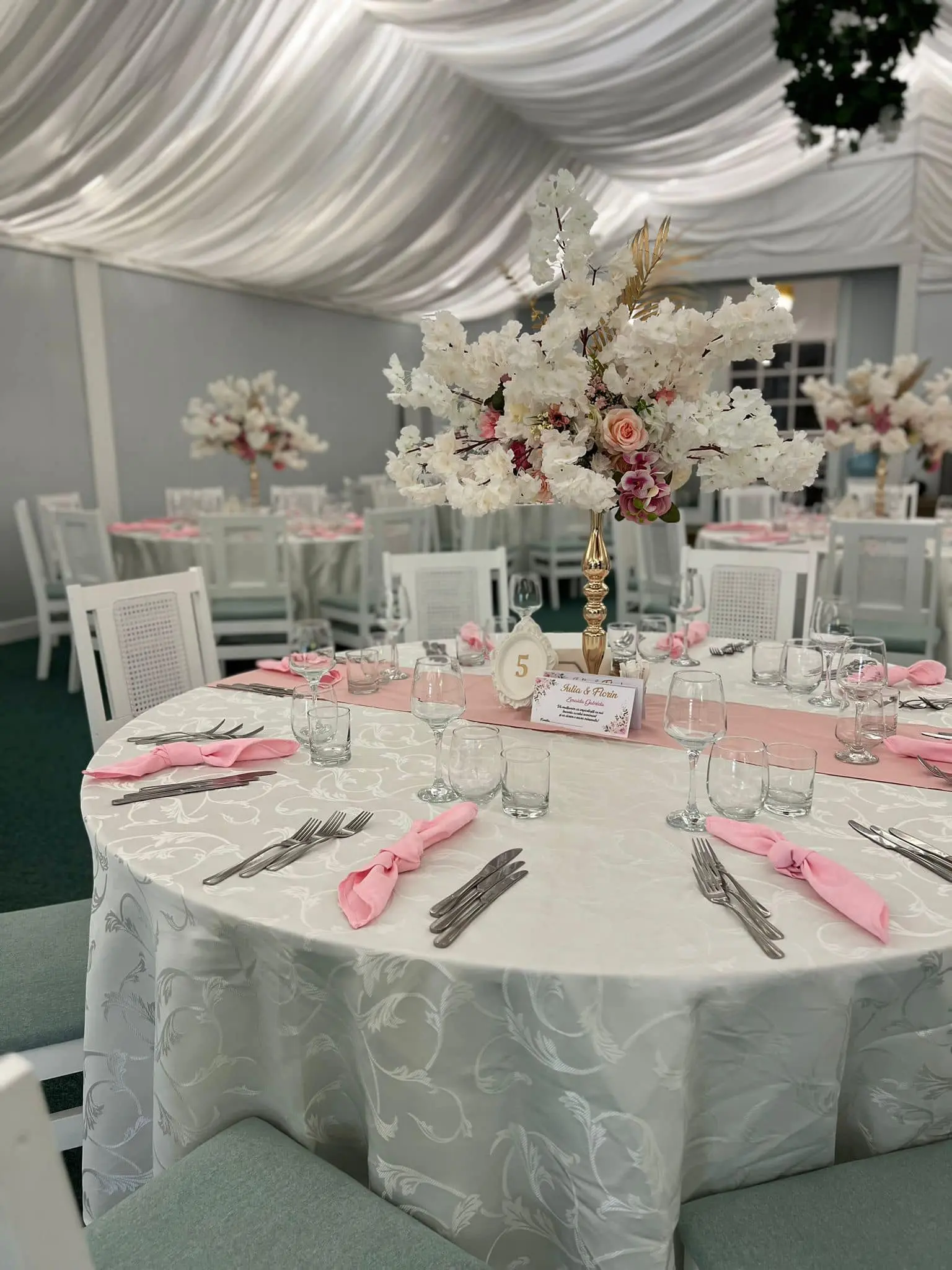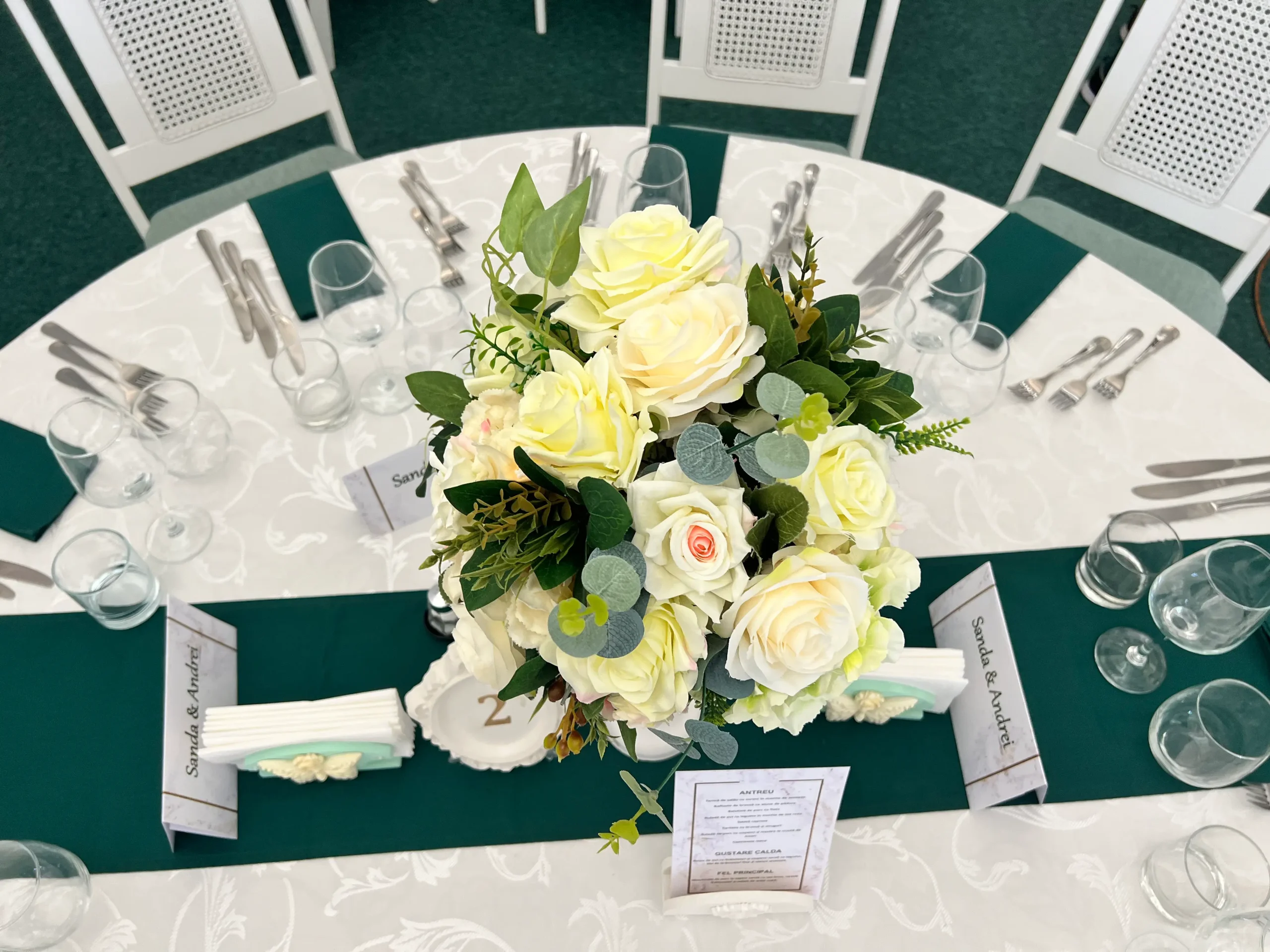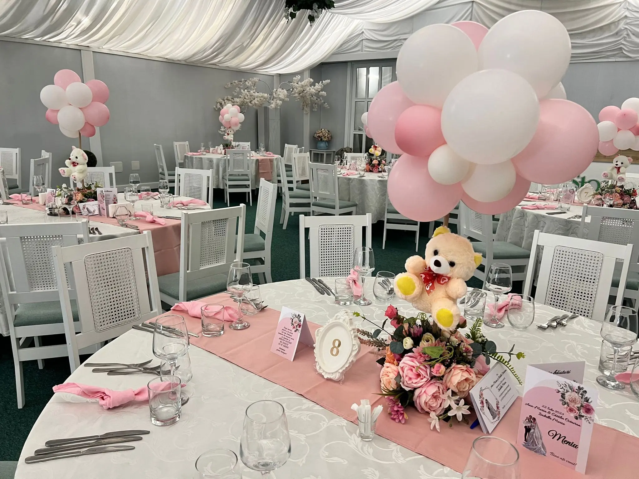 Așezarea și decorarea meselor reprezintă un aspect important în impactul pe care locația îl va avea asupra invitaților. Obține un design elegant, optând pentru numere de masă originale și aranjamente florale care vor sublinia aerul exclusivist al evenimentului tău!