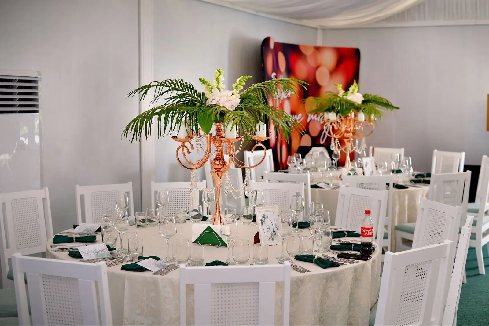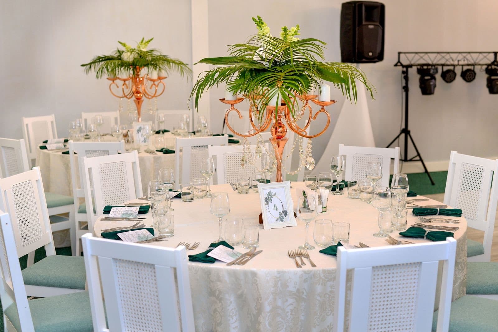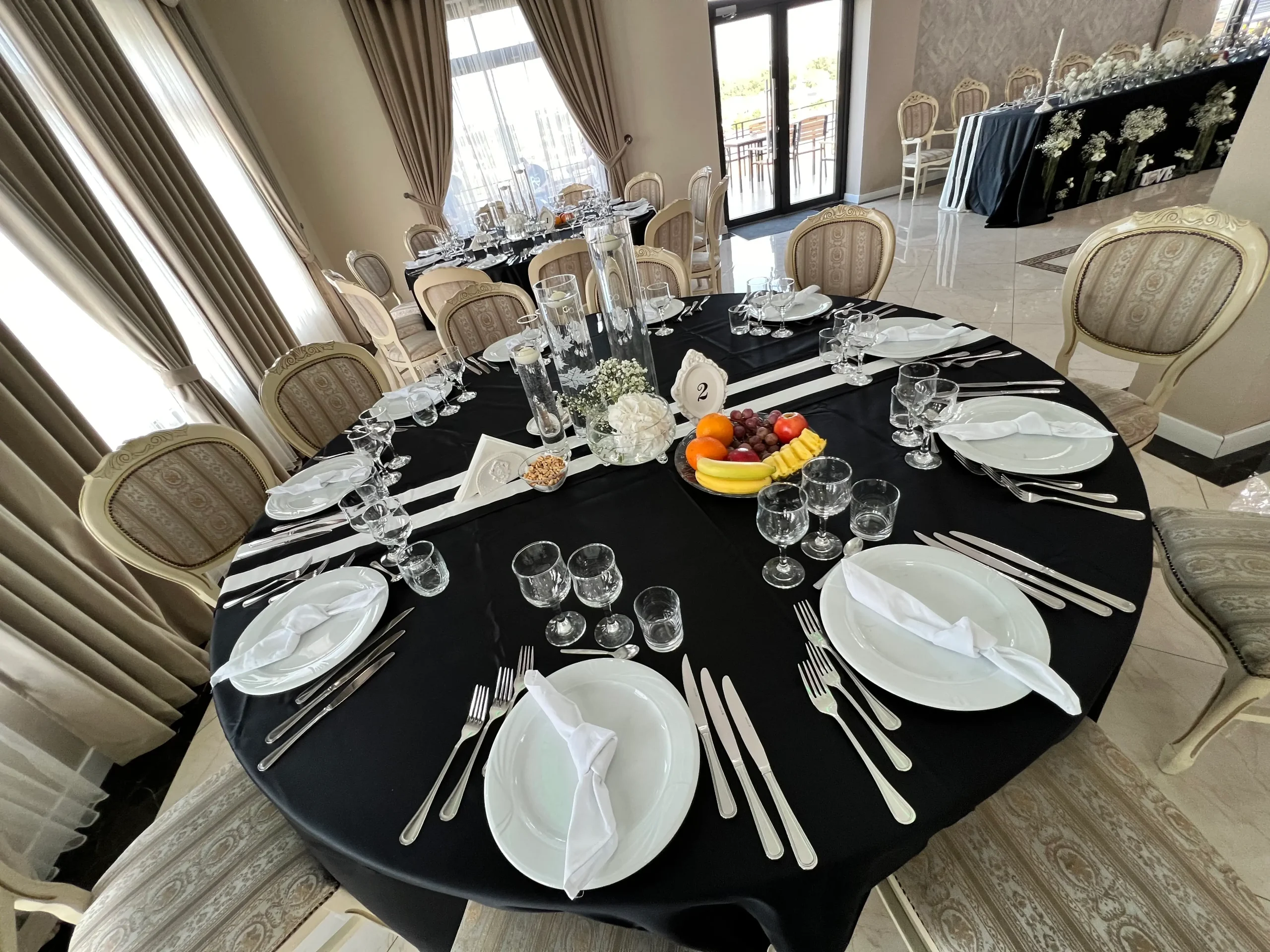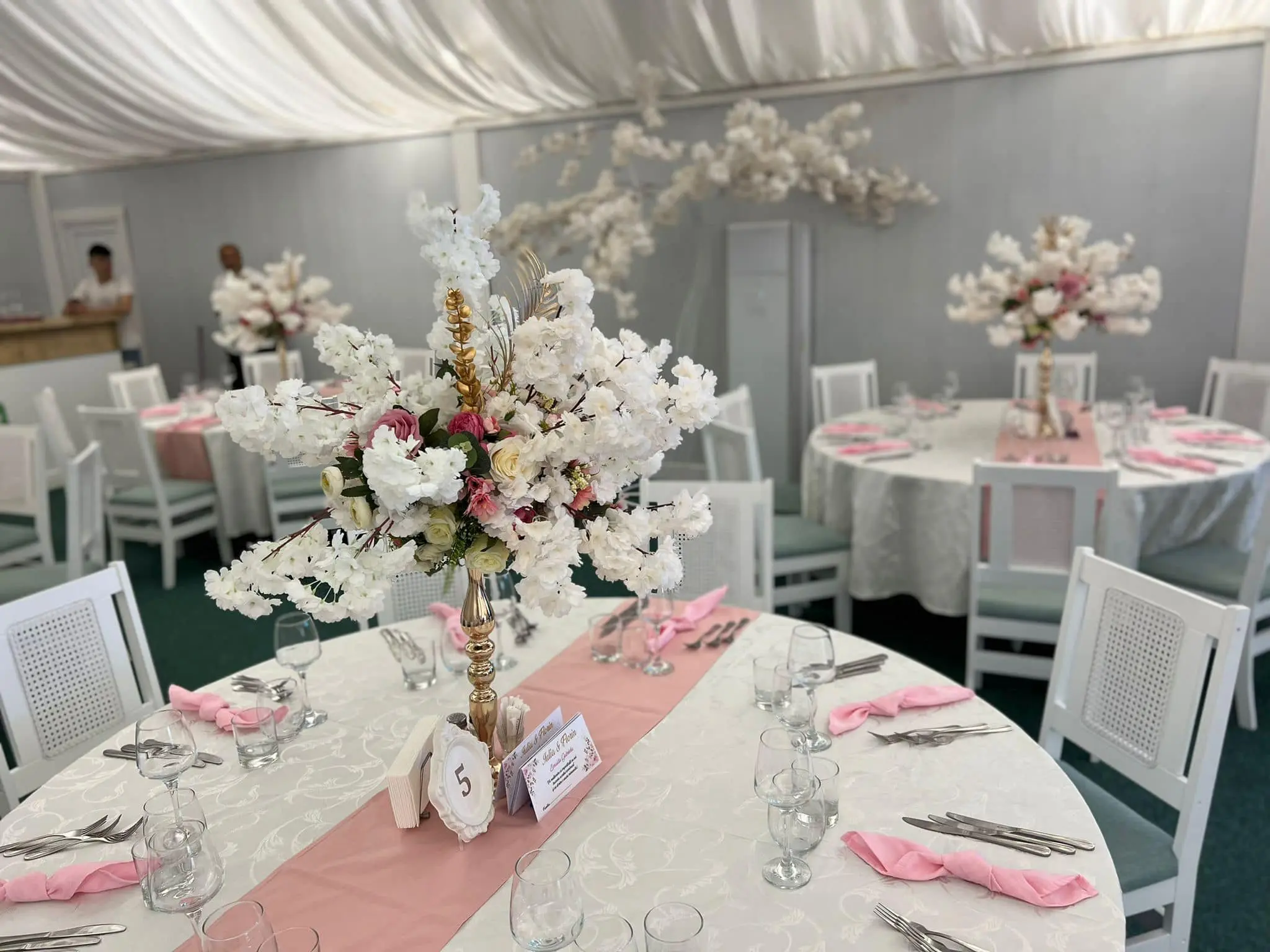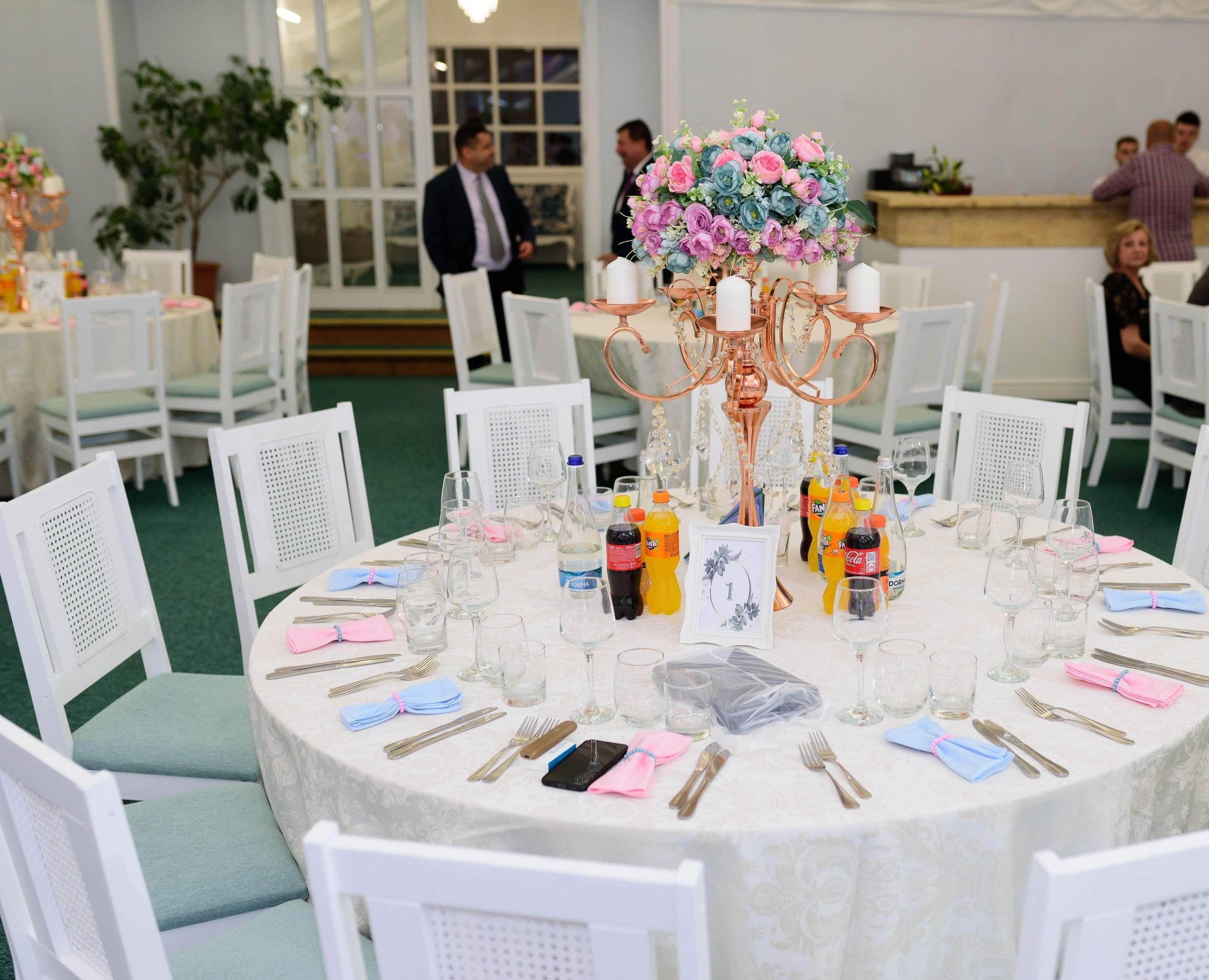 Așezarea și decorarea meselor reprezintă un aspect important în impactul pe care locația îl va avea asupra invitaților. Obține un design elegant, optând pentru numere de masă originale și aranjamente florale care vor sublinia aerul exclusivist al evenimentului tău!