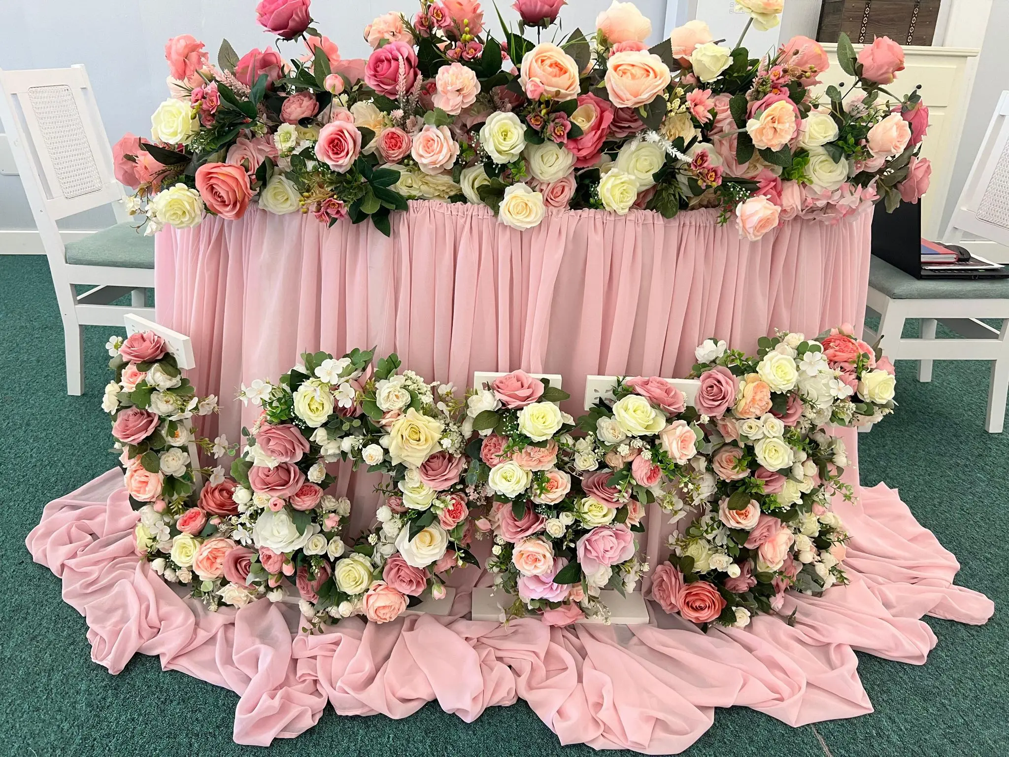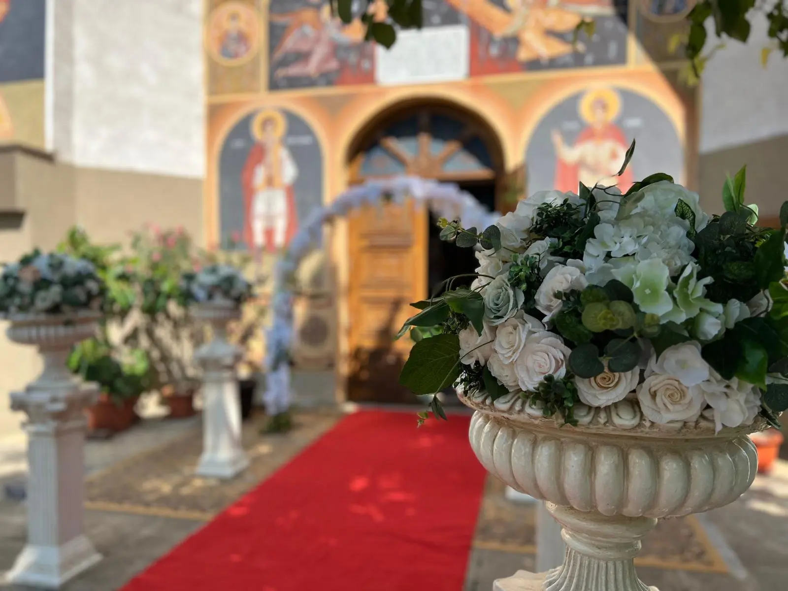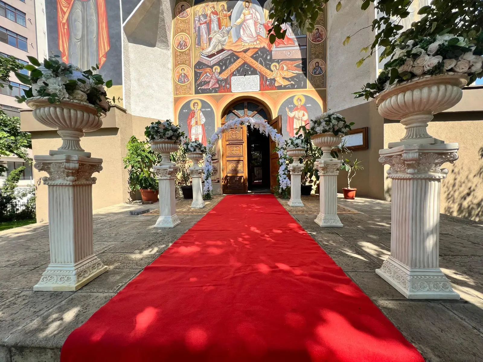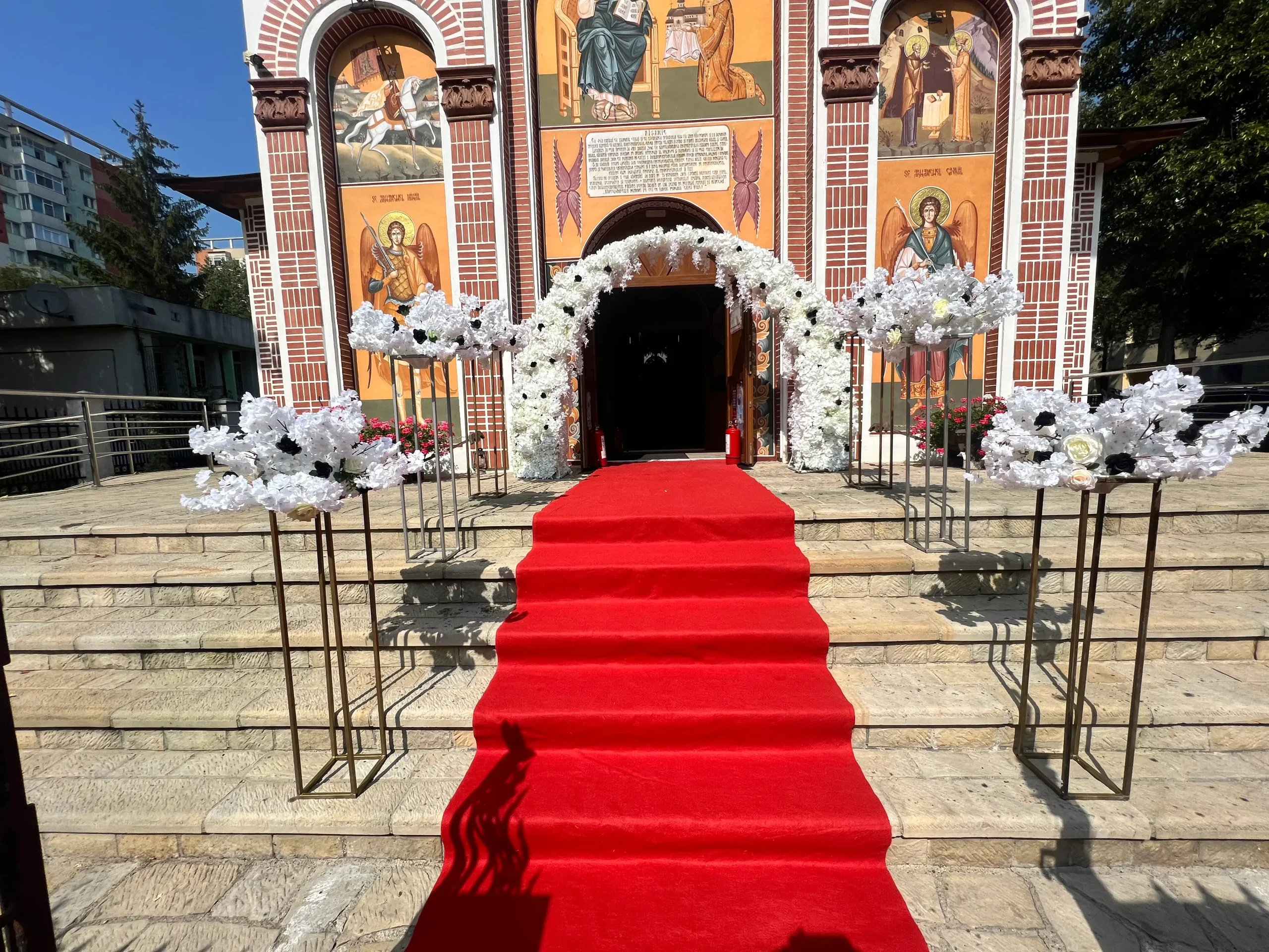 Firma noastră realizează decorațiuni pentru orice tip de eveniment, inclusiv ceremonii de cununie religioasă. Contactează-ne și vom marca acest spațiu tainic cu aranjamente florale inedite dispuse pe elementele arhitecturale ale bisericii, de-a lungul covorului pe care veți păși împreună!