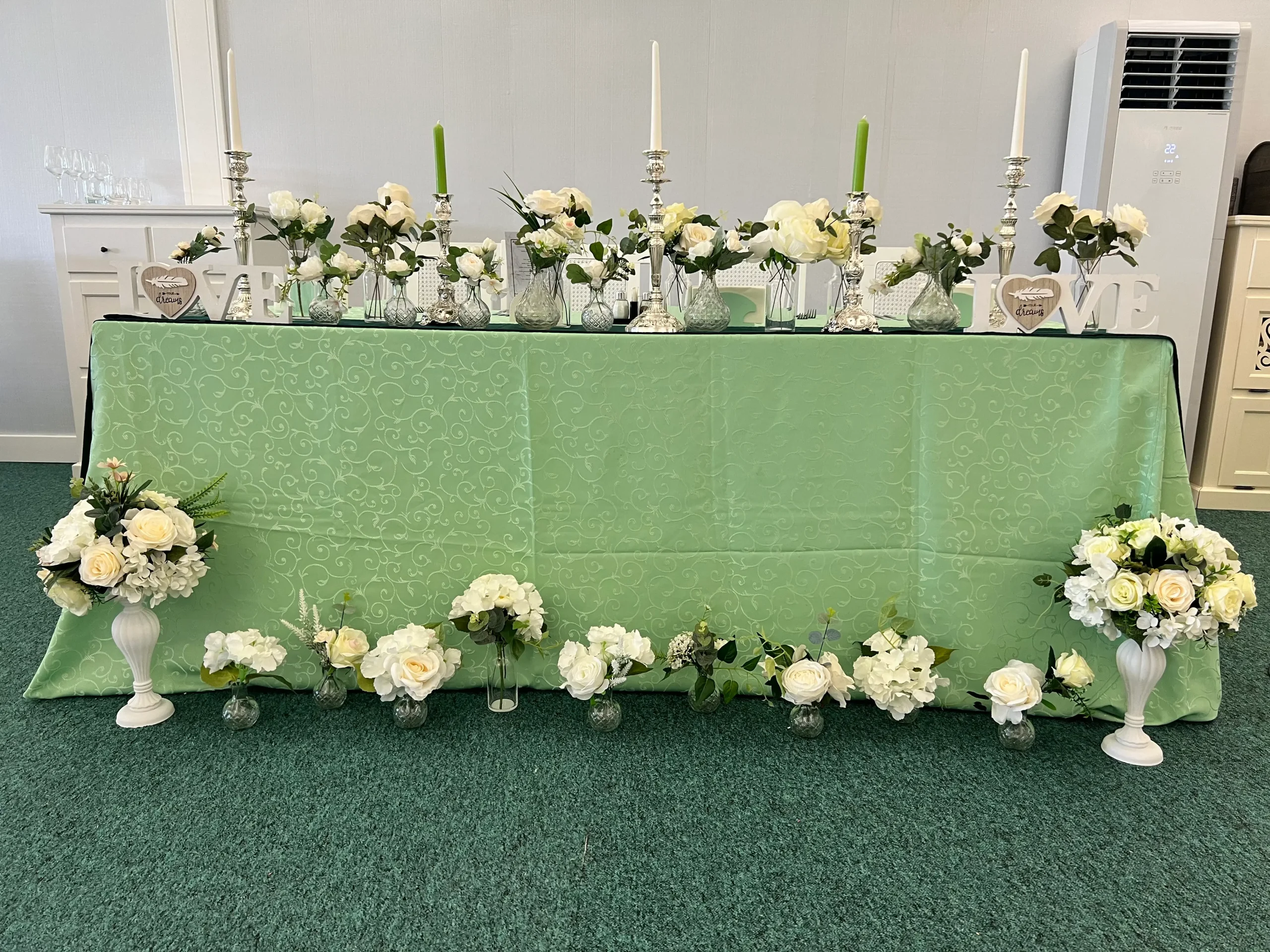 Oasis este alegerea ideală pentru decorarea sălilor de evenimente. Apelează cu încredere la serviciile noastre și îți vom oferi aranjamente florale, vom îmbrăca candelabre și vom decora cu rafinament sala în care veți scrie împreună începutul unui nou capitol din povestea voastră!